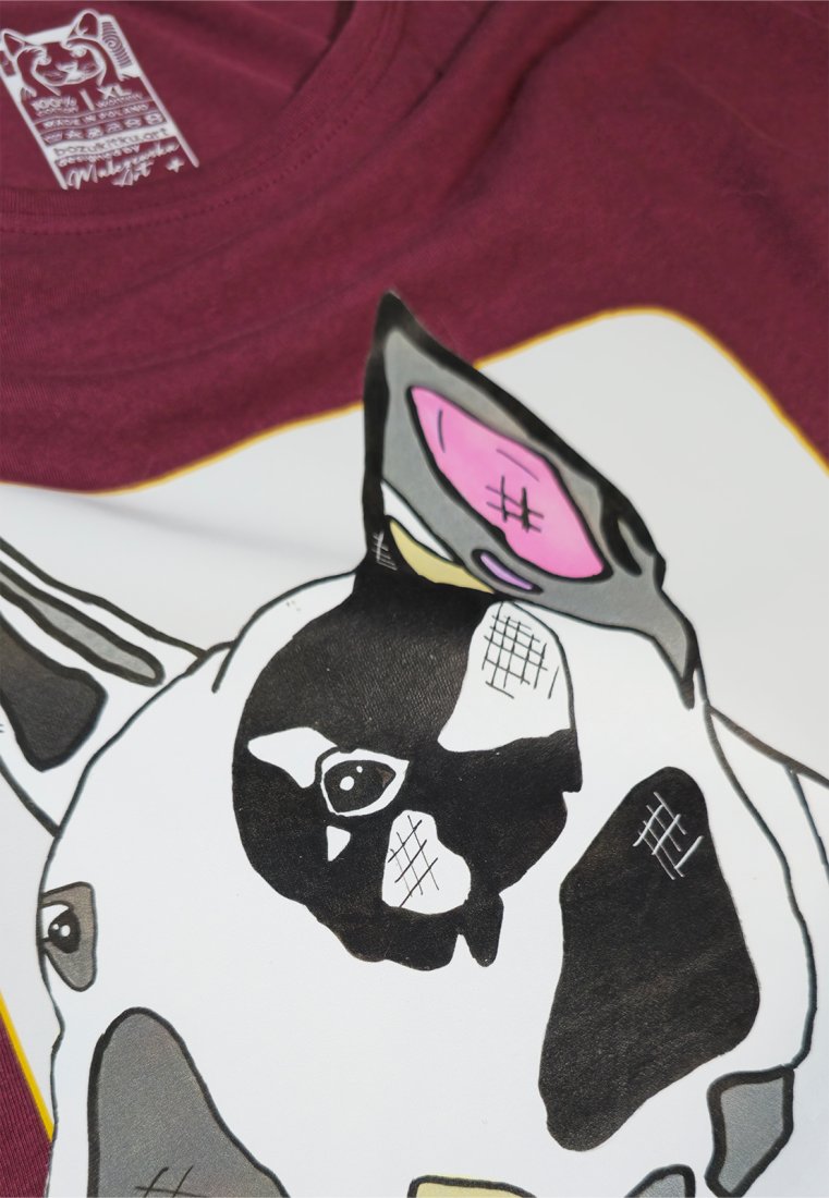 Motyw: nadruk w technologii DTF - trwały, jak upór bulteriera, gdy postanowi iść w swoją stronę.