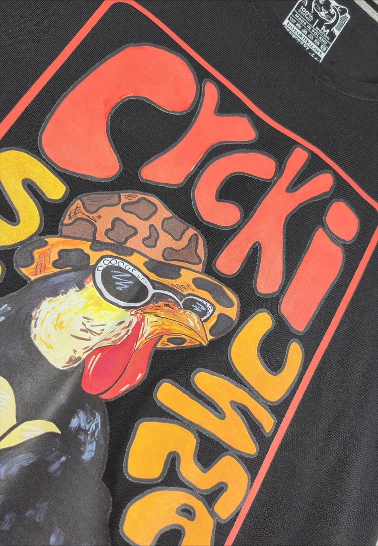Pielęgnacja: Prać w max. 40°C – kurka ma wystarczająco gorący temperament. Nie wybielać – Twoje zasady są wystarczająco jasne, Prasować na lewej stronie, w średniej temperaturze - nie smażymy kurki, Nie suszyć w suszarce – bądź podwójnie eco-friendly!