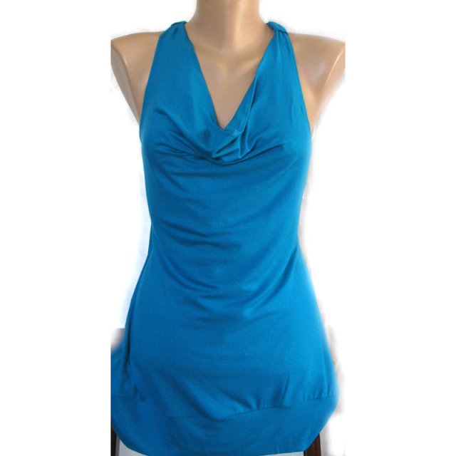 Turkusowa bluzeczka firmy AGNIESZKA rozmiar M. Szelki z tyłu są złączone w stylu sportowym. Dekolt tzw. woda. Wymiary na płasko: biust 41 cm, talia 38 cm, biodra 44 cm. Długość mierzona przodem 63 cm.