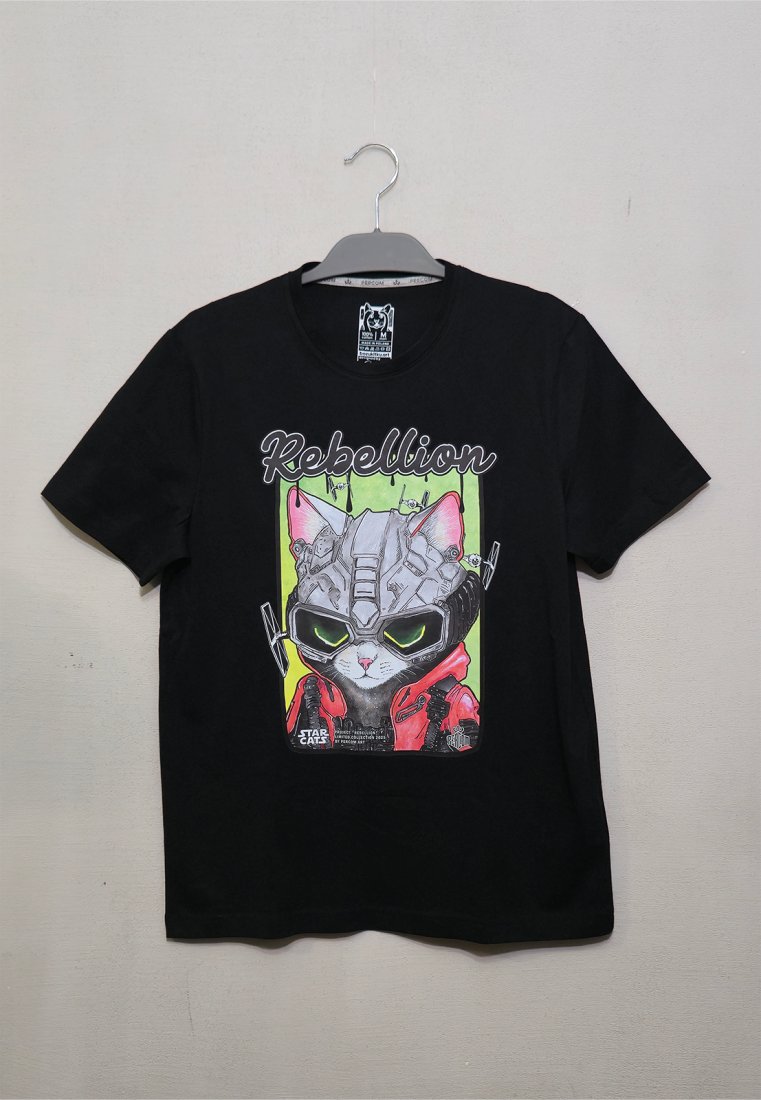Pielęgnacja: Prać w max. 40°C - jak na gwiezdną energię to i tak sporo, Nie wybielać – istnieje ryzyko wypalenia mocy, Prasować na lewej stronie, w średniej temperaturze - Koci Rebeliant zasługuje na szacunek, Nie suszyć w suszarce – koty zwykle schną naturalnie.
