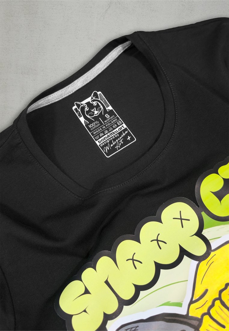 Pielęgnacja: Prać w max. 40°C – nie lubi gorących rytmów pralki. Nie wybielać – #notoracism. Prasować na lewej stronie, w średniej temperaturze – wbrew pozorom, Snoop nie chce być spalony. Nie suszyć w suszarce – woli chillować na świeżym powietrzu.