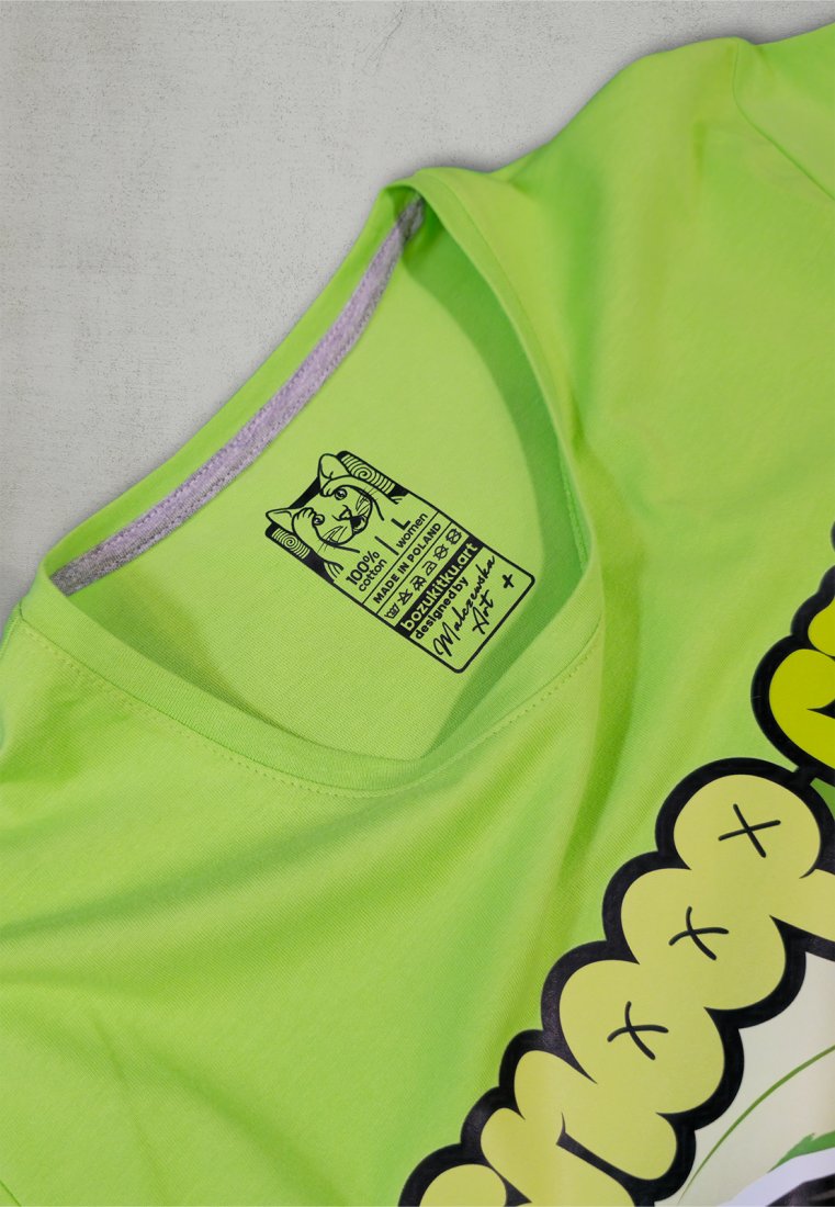 Pielęgnacja: Prać w max. 40°C – nie lubi gorących rytmów pralki. Nie wybielać – #notoracism. Prasować na lewej stronie, w średniej temperaturze – wbrew pozorom, Snoop nie chce być spalony. Nie suszyć w suszarce – woli chillować na świeżym powietrzu.