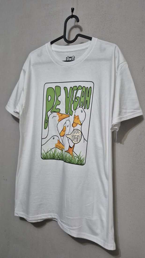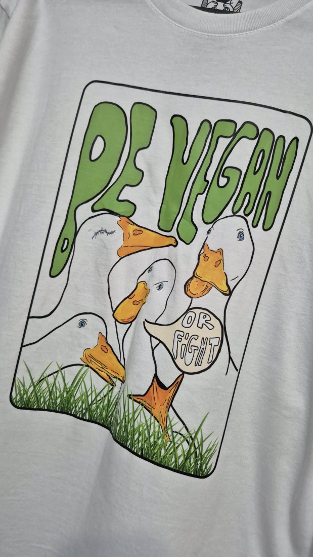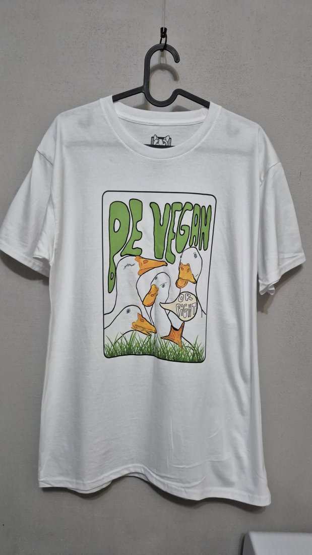Wygodna, luźna koszulka z unikalnym, kolorowym nadrukiem przedstawiającym artystyczną ilustrację Wegańskich Gąsek:)