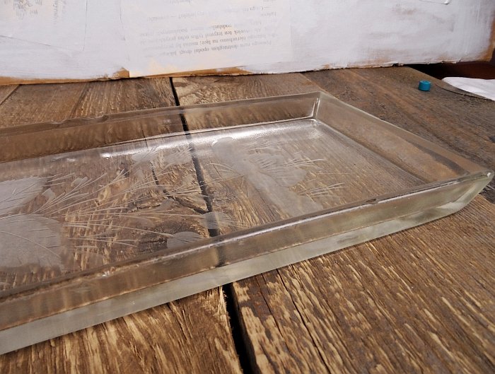 Taca z grubego szkła...ciężka ...szlifowany kwiat.