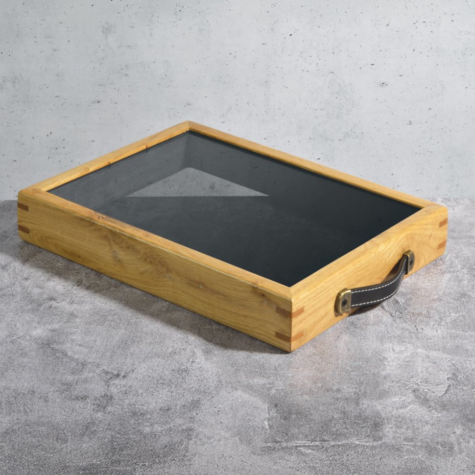 Dno z grafitowego szkła hartowanego przyciemnia powierzchnię i wzmacnia efekt głębi. Odbicia są bardziej wyraźne, a eksponowane przedmioty zyskują mocniejsze, bardziej kontrastowe tło.