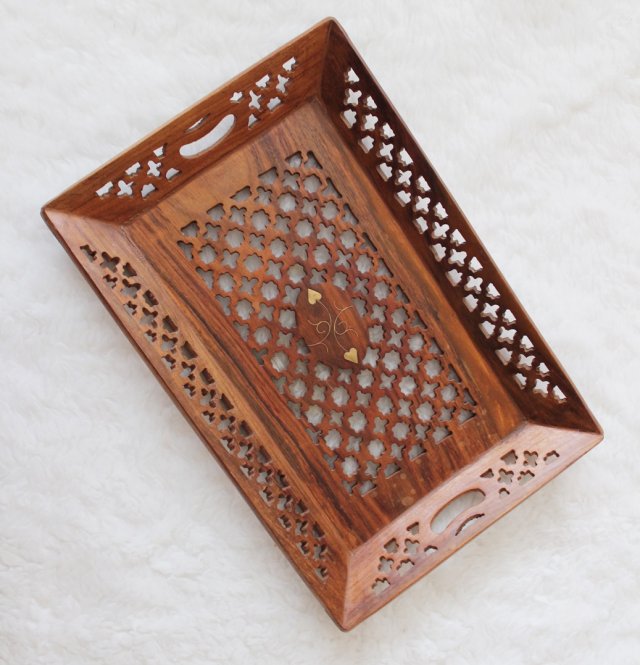 Wykonana z solidnego drewna z ażurowym wzorem.