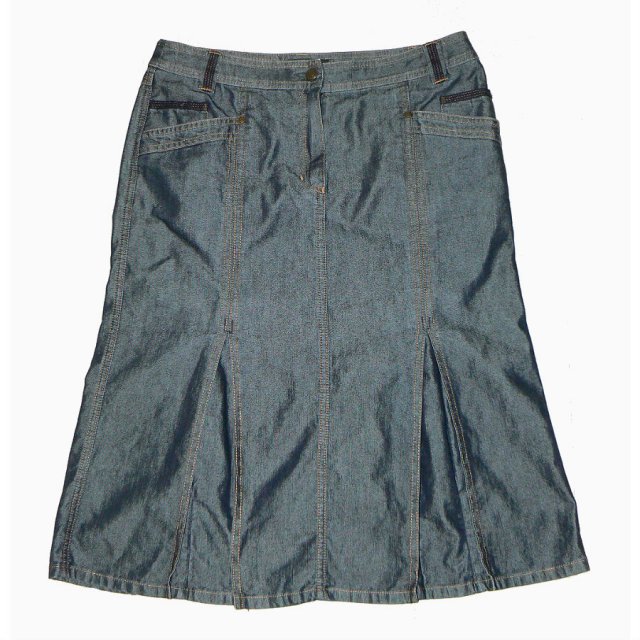Jeansowa świetna spódnica renomowanej marki Taifun. Uszyta z miękkiego jensu z lekko stalowym eleganckim połyskiem.