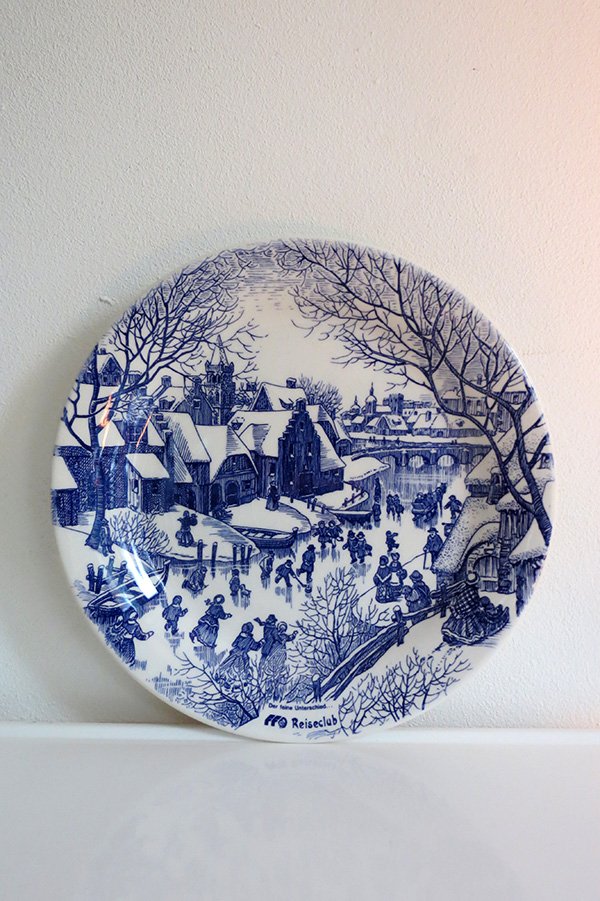 Dekoracyjny talerz IRONSTONE TABLEWARE. Kolor porcelany biały, malatura kobaltowa. Pod spodem sygnatura.Wykonany dla klubu podróżniczego.