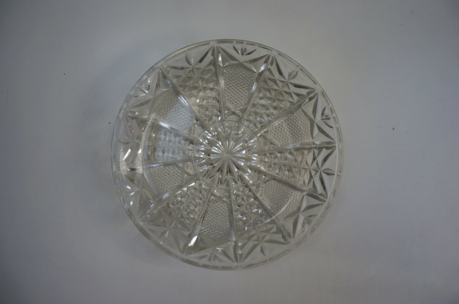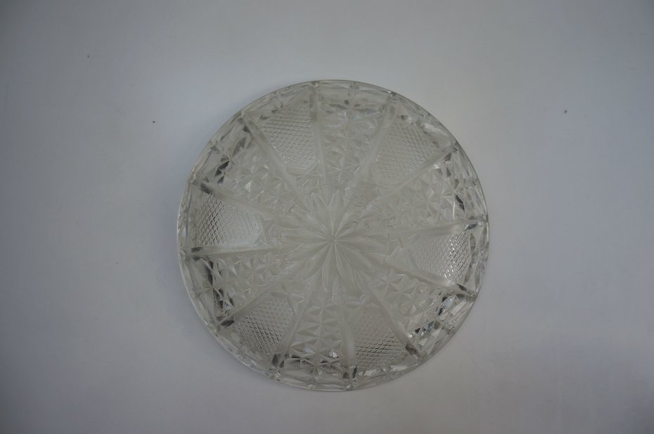 Deserowy, szklany talerz/miseczka, szlifowany na kryształ . Przedmiot oryginalny, stary z lat 70 XX w.