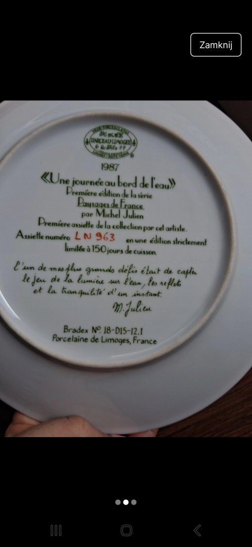 Limitowana seria wypiekana przez 150 dni. Numer LN 963. Francuska porcelana.
