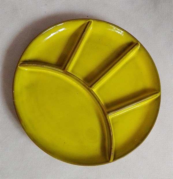 Ceramiczny, ciężki talerz na przekąski. W pięknym nasyconym kolorze. Przegródki.