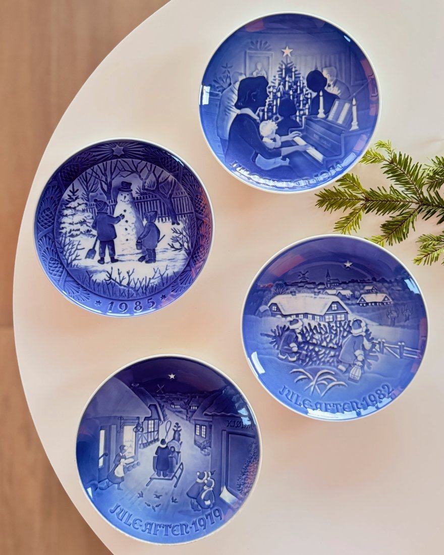 Bożonarodzeniowe talerze kolekcjonerskie, niezmiennie utrzymane w kolorze kobaltowym duńska firma Bing & Grondahl produkowała od 1895 roku – co roku z innym motywem.