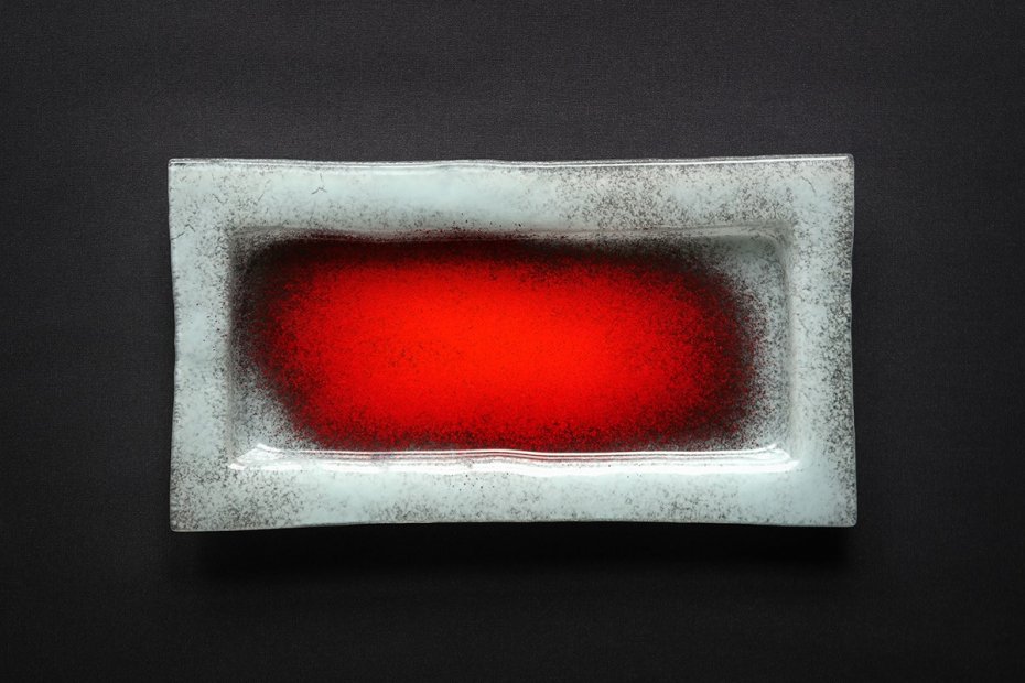Unikalna i wyjątkowa pod każdym względem, wypalana w wysokiej temperaturze, barwiona i ręcznie cięta szklana patera, a zarazem talerz.