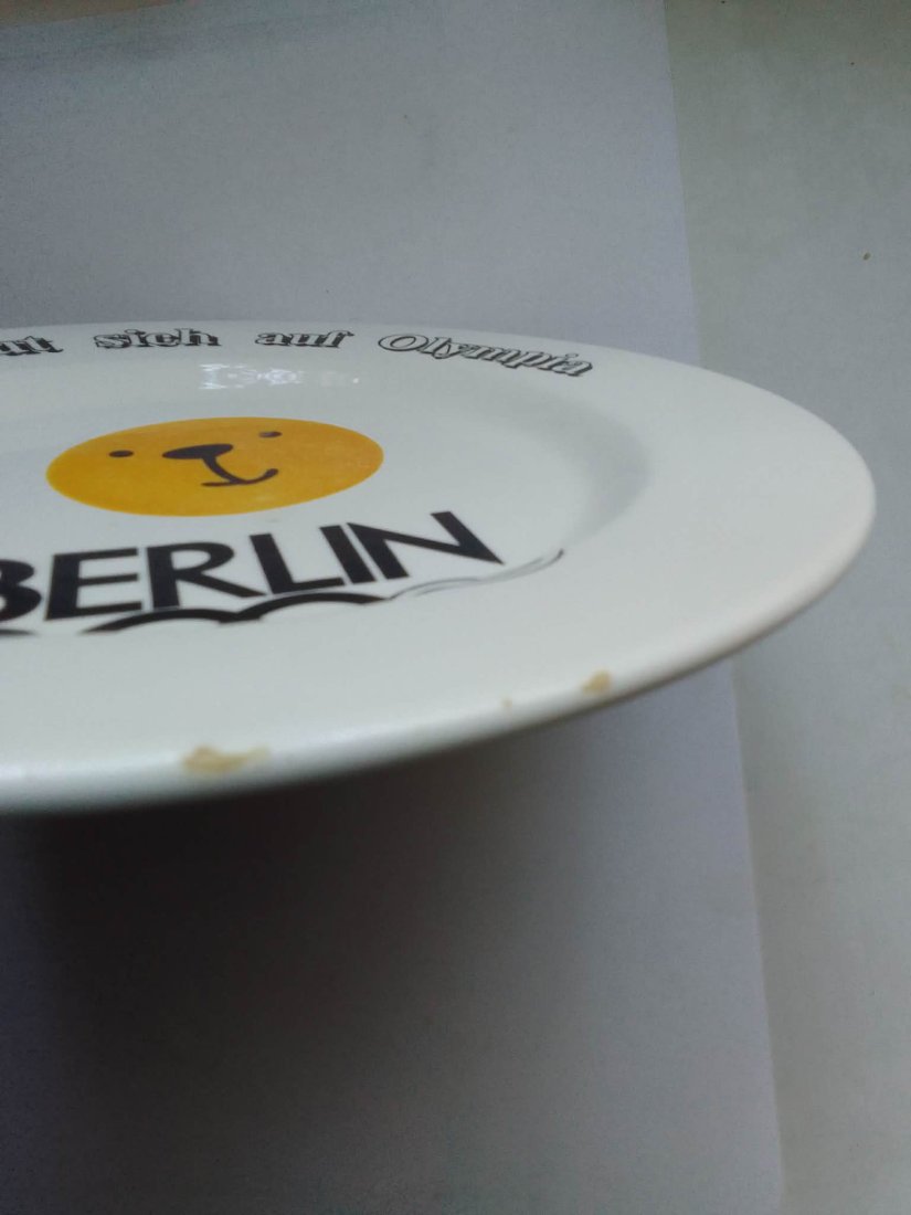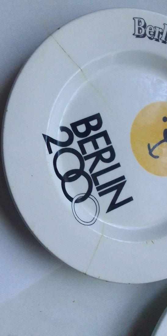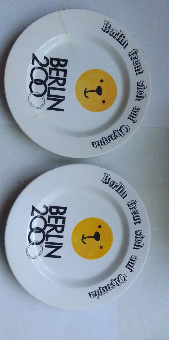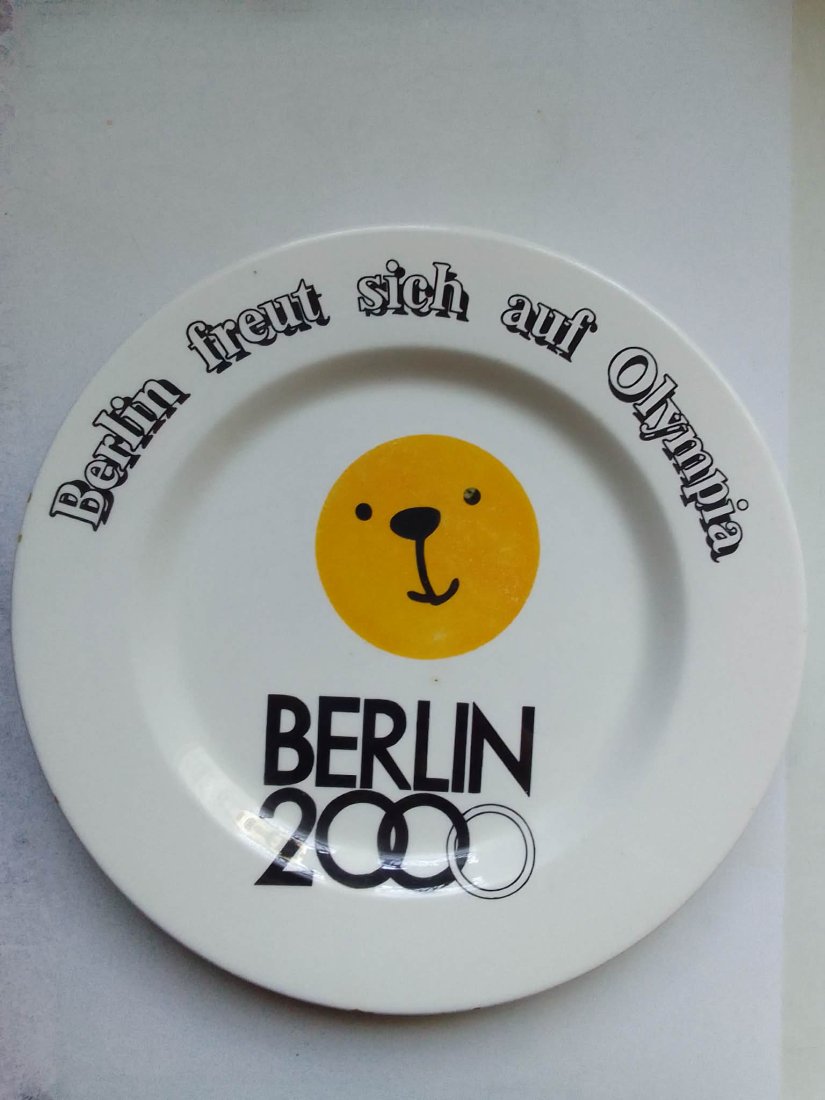 Talerz w kolorze białym, z centralnie umieszczoną żółtą grafiką (stylizowana buźka) oraz czarnym nadrukiem. Motyw nawiązuje do starań Berlina o organizację letnich igrzysk olimpijskich w 2000 roku.