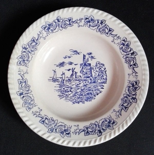 Motyw z krajobrazem holenderskim, malatura niebieska, szkliwiony.
