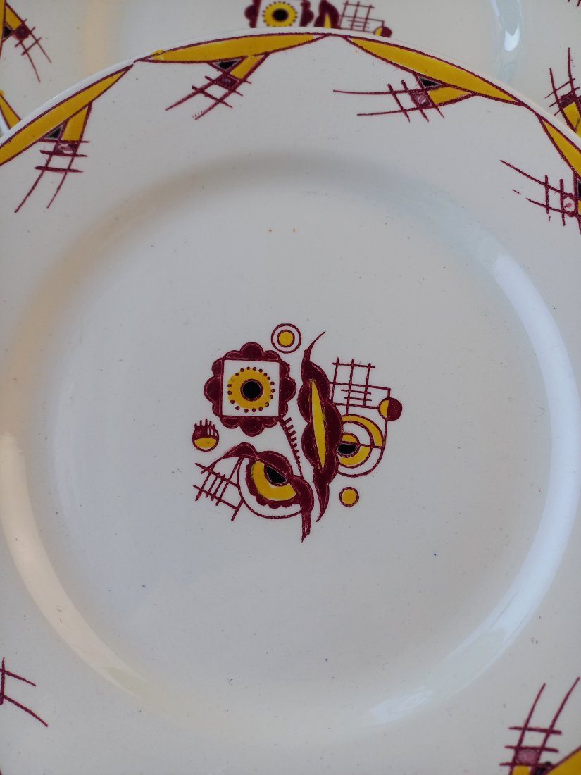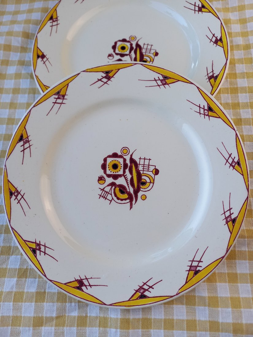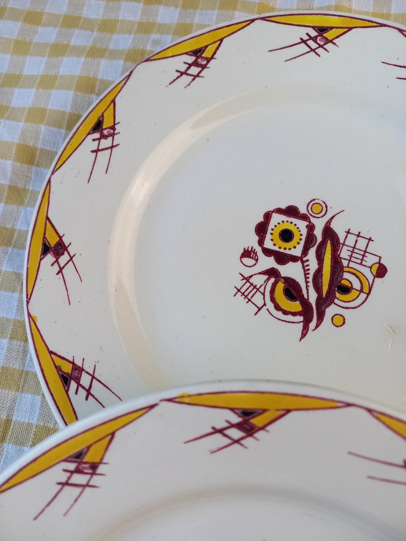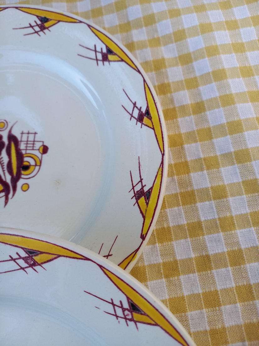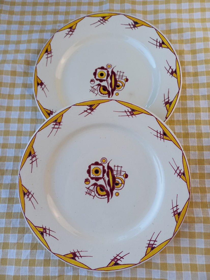 Dwa talerze z Belgii. Kremowa ceramika, zaskakujący wzór. Widać na nich ślady czasu. Vintage!!!