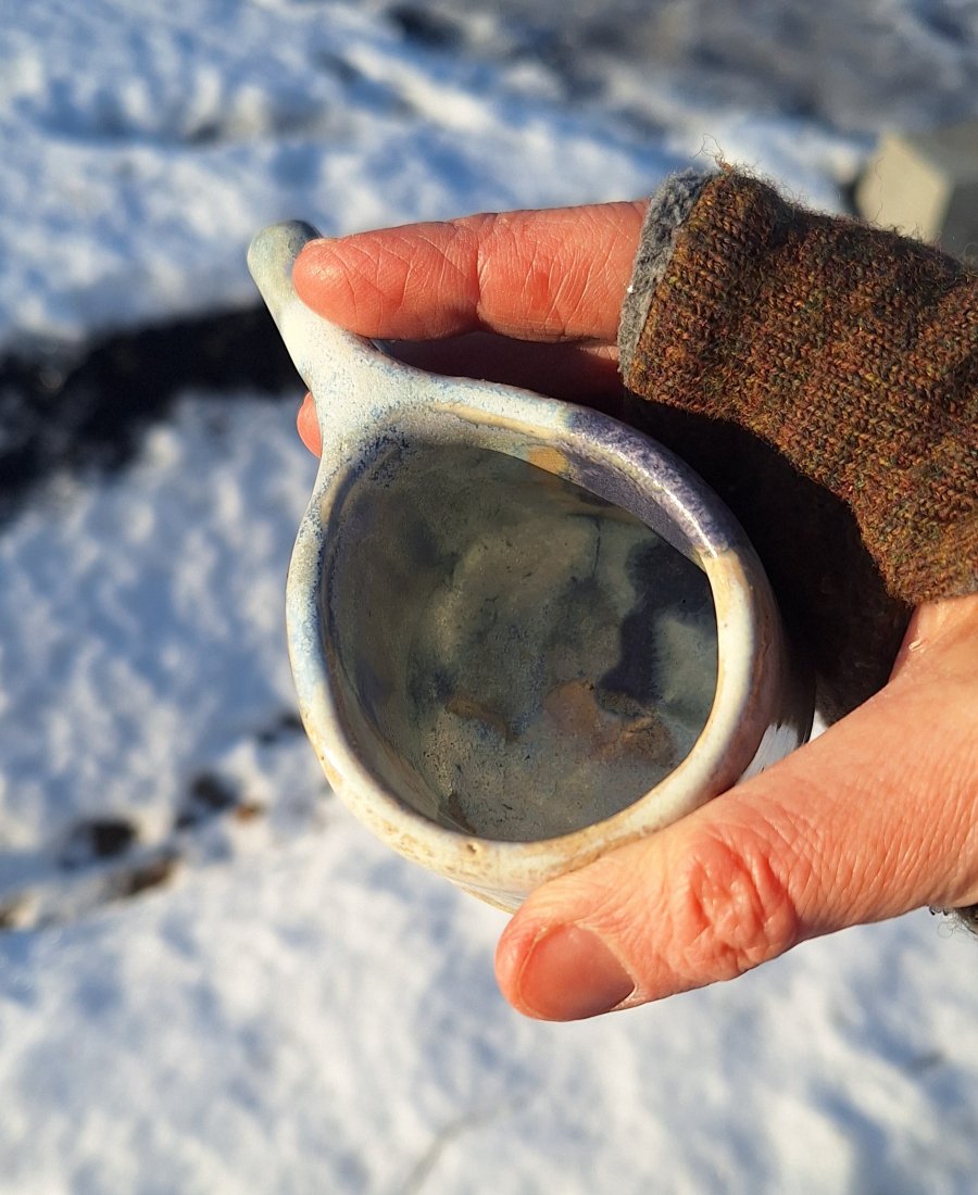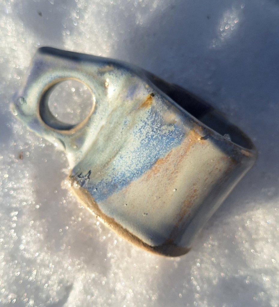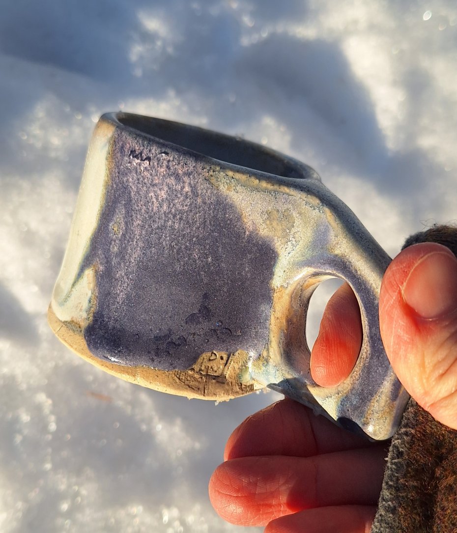 Ta filiżanka ma kształt kubka o oryginalnym kształcie i została przeze mnie wykonana ręcznie z jasnej gliny. Ostatecznie wypaliłam ją w temperaturze 1230°C, żeby nadać jej najwyższą jakość i trwałość w codziennym użytkowaniu, a przy tym wydobyć głębię kolorów szkliw. Jest unikatowa, bo wykonana ręcznie, BEZ UŻYCIA FORMY. Każda następna z tej serii będzie się już zatem różniła od poprzedniej.