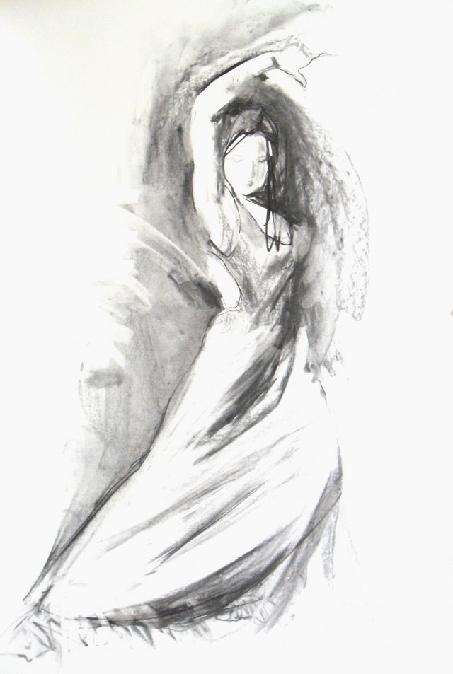 Rysunek węglem,50/70cm.Sygnowany.Wysyłka w tubie.