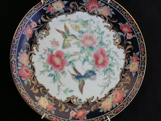 Porcelanowy talerz z piękną dekoracyjną malaturą na satynowo wykończoną. Nie sygnowany, w orientalnej stylistyce. Z tyłu profesjonalny uchwyt do powieszenia. 21 x 2,5 cm. Stan zachowania bardzo dobry.