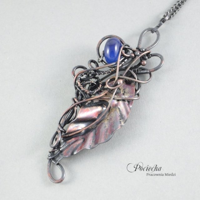 Stworzyłam go z miedzi i oponki niebieskiego agatu.