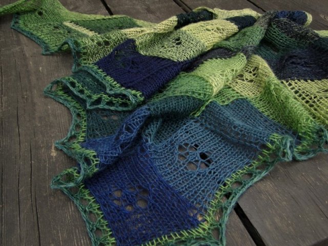 Niebanalna chusta, delikatna i zwiewna,która może służyć cały rok: jako ochrona przed chłodem lub element stylizacji. Wykonana ręcznie na drutach . Niestety zdjęcia nie oddają delikatności, miękkości i pięknych niuansów kolorystycznych. Wymiary: ok. 198 (najdłuższy bok) x ok. 50 (wysokość trójkąta) cm. Skład: 75% wełna, 25% poliamid. Polecam serdecznie. Dużo ładniejsza, niż na zdjęciach - cudowne kolory!