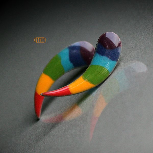 Ceramiczne podłużne kolczyki, ręcznie wykonane z delikatnej gliny kamionkowej, jednostronnie szkliwione mieszanką wielobarwnych szkliw z efektem plamek, tył matowy ciemnoszary, na antyalergicznych sztyftach.długość ok 2,8cm. Polecam