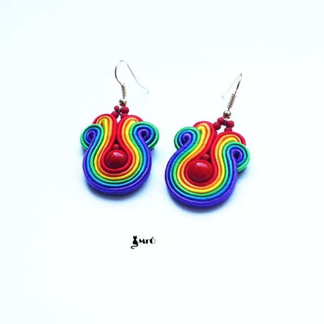 Kolczyki wykonane w technice haftu Soutache w pięknych, tęczowych kolorach