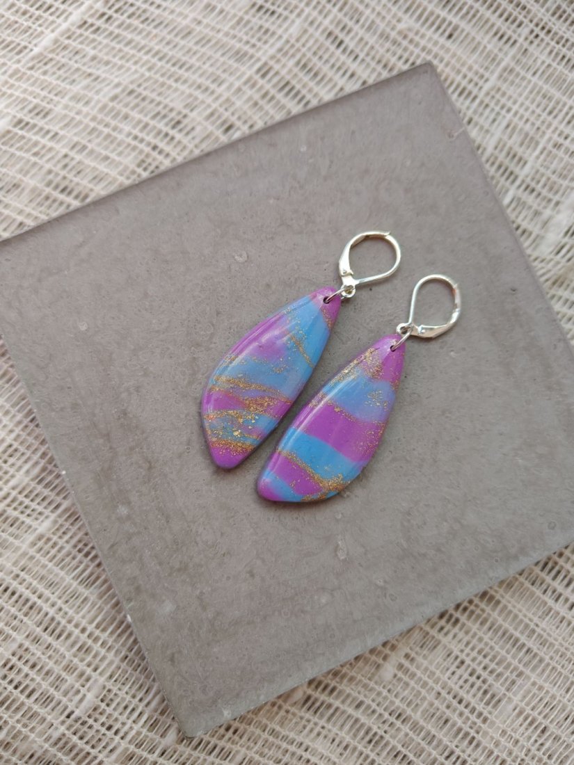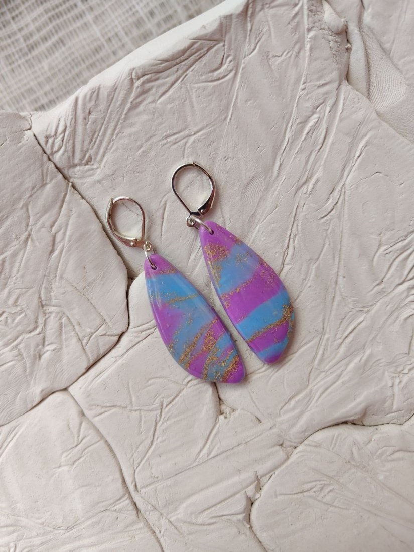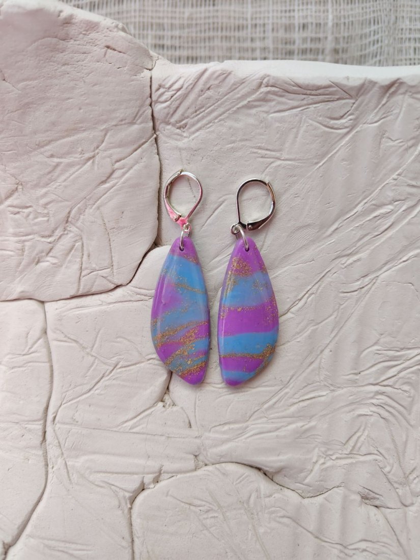 Unikalne, ręcznie wykonane kolczyki, które przyciągają spojrzenia dzięki hipnotyzującemu połączeniu intensywnego fioletu i turkusu, przełamanych subtelnymi złotymi akcentami. Każda para jest tworzona z dbałością o najmniejszy detal, a warstwa żywicy nadaje im efekt szklistości i wyjątkowej głębi koloru. Idealne dla osób, które lubią wyróżniać się oryginalną biżuterią i cenią rękodzieło z charakterem. Doskonale sprawdzą się zarówno na co dzień, jak i jako wyrazisty dodatek na specjalne okazje.
