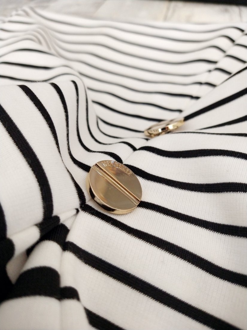 Z przodu złote logowane guziki.
