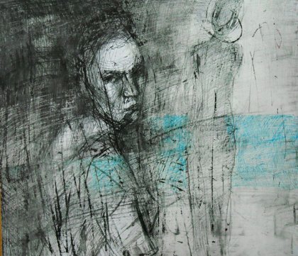 Rysunek wykonany w technice mieszanej (tusz, ołówek, farba) na brystolu o formacie 40x35