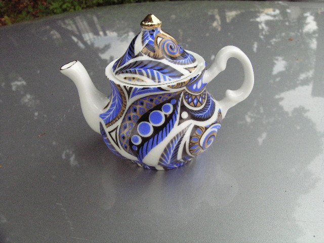 Przeuroczy imbryczek herbaciany w miniaturowym wydaniu - w pełni użytkowy ze szlachetnej leciutkiej porcelany.Florystyczne zdobienie i złocenia na białej porcelanie,całość na błyszcząco wykończona.