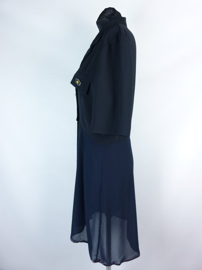 żakiet bez podszewki , krótkie rękawy , od pasa przedłużony szyfonową tkaniną