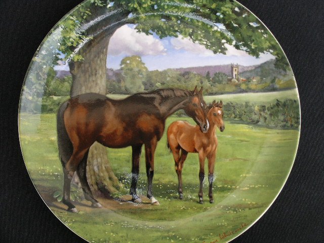 Talerz z kolekcjonerskiej serii autorstwa Susie Whitcombe z przedstawieniami najsłynniejszych sportowych ras koni w sceneriach ich oryginalnego pochodzenia. Sygnowany Spode, U.S.A., edycja limitowana z 1988 roku. Talerz notowany na międzynarodowej liście Bradex pod indywidualnym numerem 7661 B. Fantastyczna jakość malatury i dźwięcząca szlachetnie ceramika. 21,5 x 2 cm. Stan zachowania bardzo dobry.