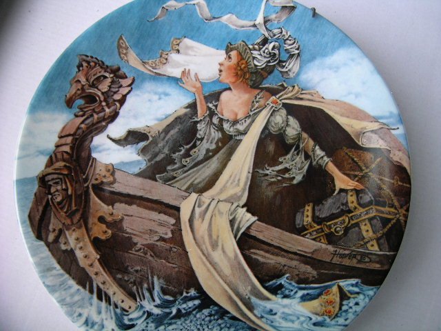 Porcelanowy kolekcjonerski Talerz,pierwszy z serii z 1981 rokuThe Canterbury Tales Coolection Sponsores for Medieval & Reneissance Studies Oxford England, Genuine Baronet Bone China. Sygnowany The Longton CROWE Pottery Stoke - On - Trent . England. Limitowana Edycja produkowana tylko 90dni. Talerz ma swój indywidualny numer 3281 E. oraz numer na międzynarodowej liście talerzy kolekcjonerskich BRADEX