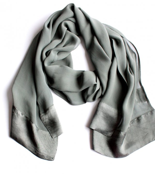 Zwiewny, duży szal marki Masai w eleganckim odcieniu szarości z kroplą zieleni.