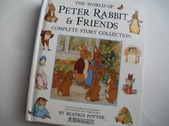Książeczka dla dzieci 270 stron the world of Beatrix potter Peter Rabbit. Sztuka, nauka, bajka i historia w jednym. Kultowa rzecz. Gruba błyszcząco tekturowa okładka, jedwabisty połysk stron, urocze, kolorowe ilustracje i opowieści w języku angielskim. " " The world of Peter Rabbit & friends complete story collection the autorized animated series based on the original Tales by beatrix potter. F. Warne & Co. This edition first published by frederick warne 1999 . 5791086. Bardzo ładnie wydana, idealna dla dzieci do przyjemnej nauki języka. Duużo uroczych obrazków; ) 13,5 x 15,5 x trochę ponad 2 Stan zachowania - okładka i większa część stron - bardzo dobry minus. Niewielkie ślady użytkowania. Klejona / starałam się pokazać na zdjęciu /, jedna strona, kilka troszkę zagniecionych. Papierowa obwoluta nosi ślady użytkowania, ale dołączam, choć nie fotografowałam. Na prezent, raczej nie, ale do nauki i oglądania absolutnie tak. Rzadko spotykana seria i edycja.