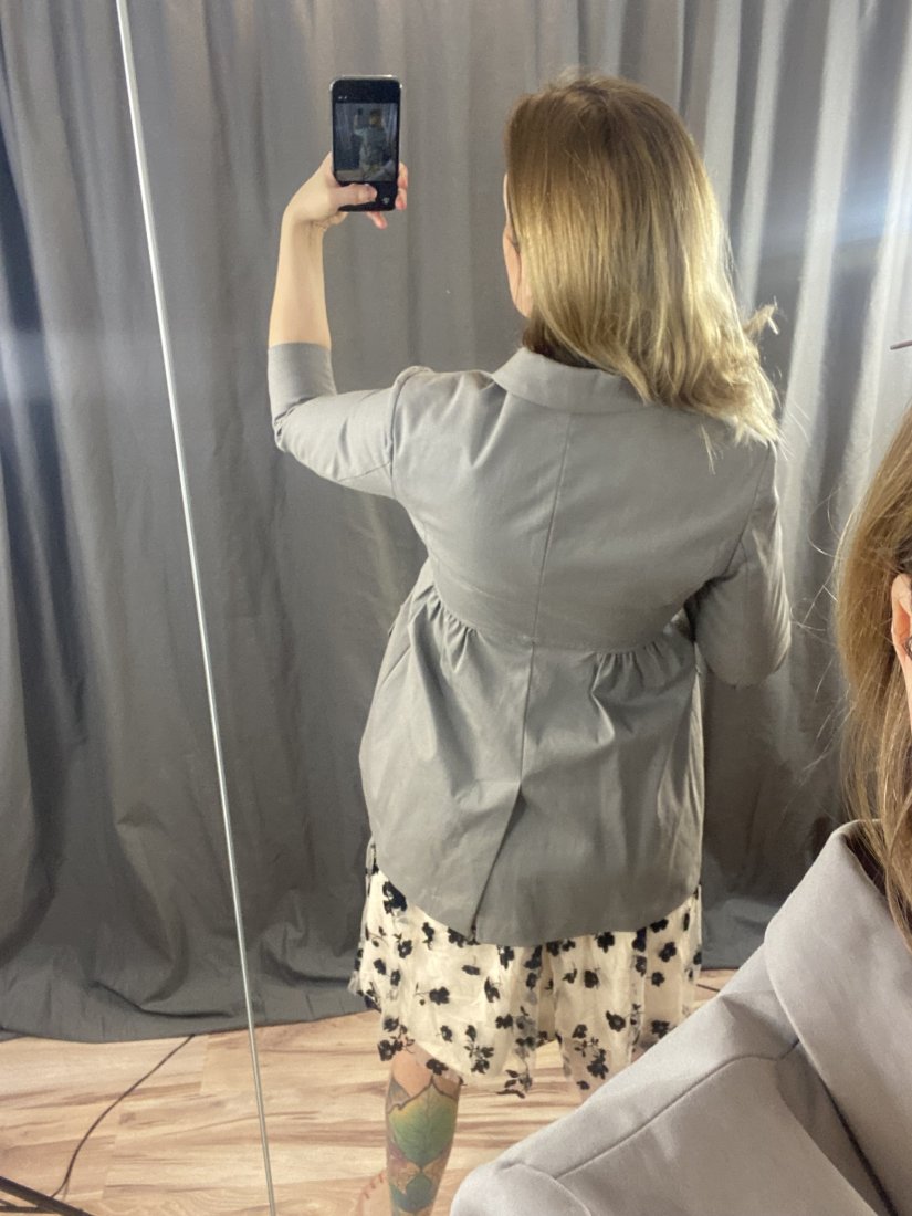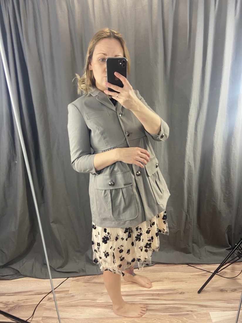Rozmiar: S metkowo, ale polecam na XS, można też dla jakiejś małej stokrotki jako taki dłuższy płaszczyk