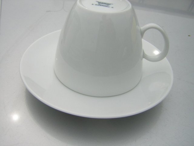 Szlachetnie Porcelanowy Zestaw Filiżanka i Spodek sygnowany THOMAS GERMANY / Grupa Rosenthal/ . Ponadczasowa, elegancka forma i kolor. Wygodne ucho, mocna porcelana. Biel na błyszcząco szkliwiona. Klasa i szyk.