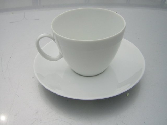 Szlachetnie Porcelanowy Zestaw Filiżanka i Spodek sygnowany THOMAS GERMANY / Grupa Rosenthal/ . Ponadczasowa, elegancka forma i kolor. Wygodne ucho, mocna porcelana. Biel na błyszcząco szkliwiona. Klasa i szyk.