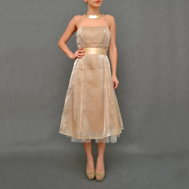 Sukienka na bal w cielistym kolorze. Z cienkiego tiulu, pod spodem tiulowa falbana. Wiązana w talii. Na cieniutkich ramiączkach. Z połyskiem. Z tyłu zapinana na zamek.