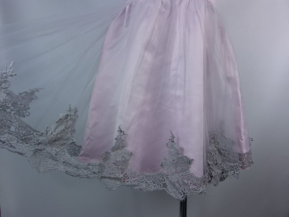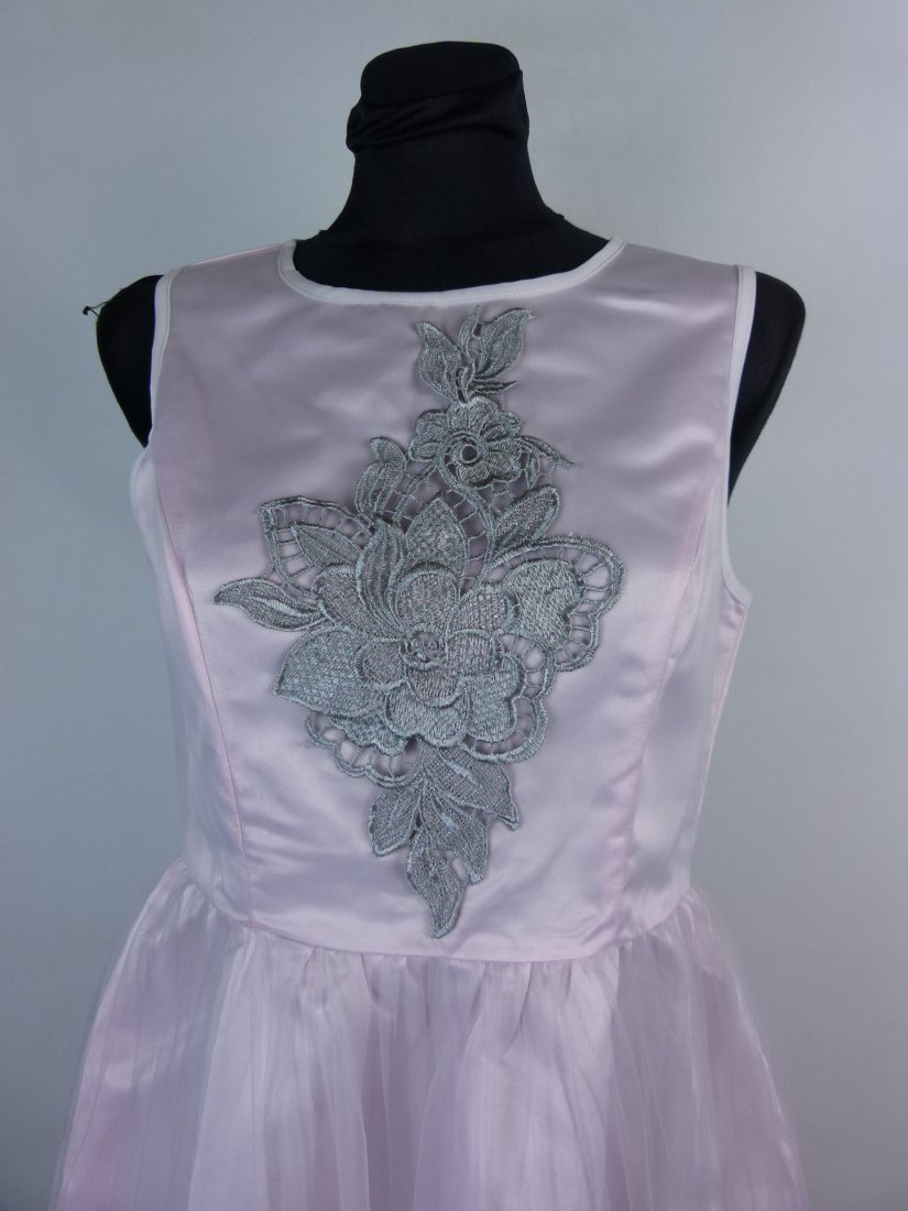 materiał wierzchni miękki tiul, różowy satynowy