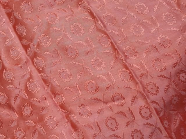 Tkanina żakardowa - na poszewki poduszkowe albo na podszewkę, kolor - łososiowy, kwiatowy wzór.