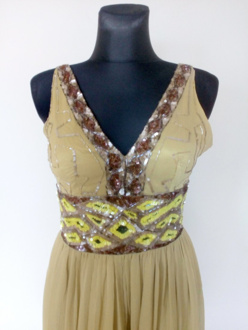 piękna suknia w stylu greckiej bogini. rozm.s/m kolor ciemny beż i ro...