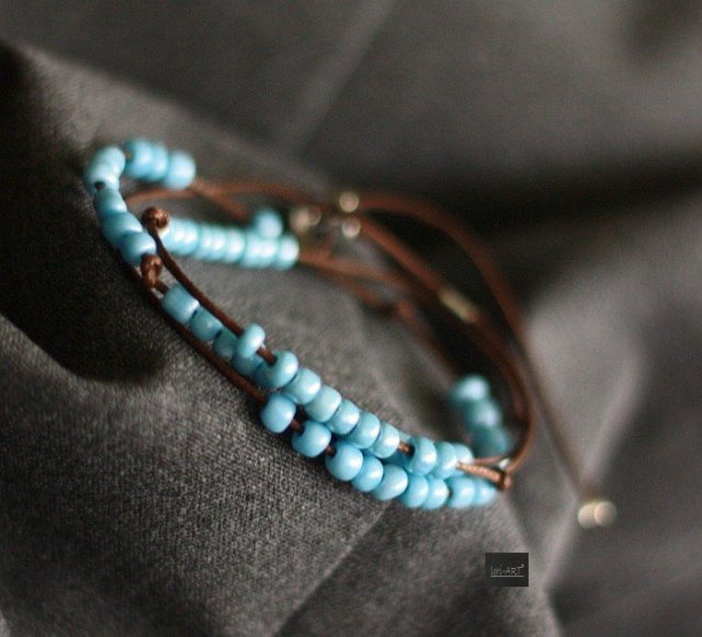 Minimalistyczna bransoletka wykonana z woskowanego sznurka oraz ślicznych szklanych koralików toho (4mm) . Bransoletka regulowana za pomocą wygodnego zapięcia . Biżuterie wysyłam w ozdobnym bezpiecznym opakowaniu .