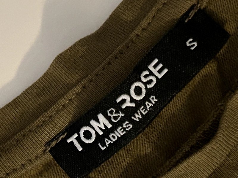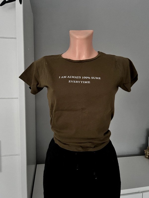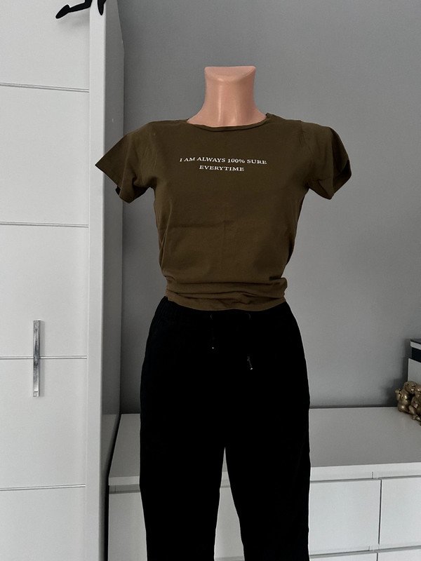 T-shirt marki Tom&Rose, rozmiar z metki to jest 36. Wykonany w 100% z bawełny. Ma piękny kolor khaki. Posiada napis I am always 100% sure everytime.
