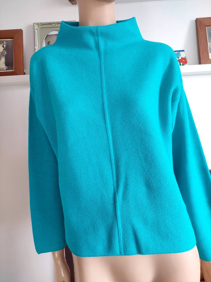 sweter marki tom tailor . fason prosty oversizowy, z obniżonym rękawem. Materiał 52% wiskoza 27% poliester 21% poliamid. rozmiar z metki XL. kolor turkusowy. Na manekinie o rozmiarze małe 38, stan super. Podaję wymiary mierzone na płasko;