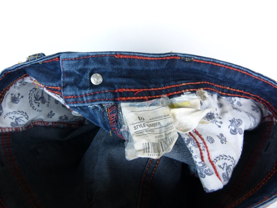 małe przetarcie pod prawą kieszenią, pokazane na zdjęciu