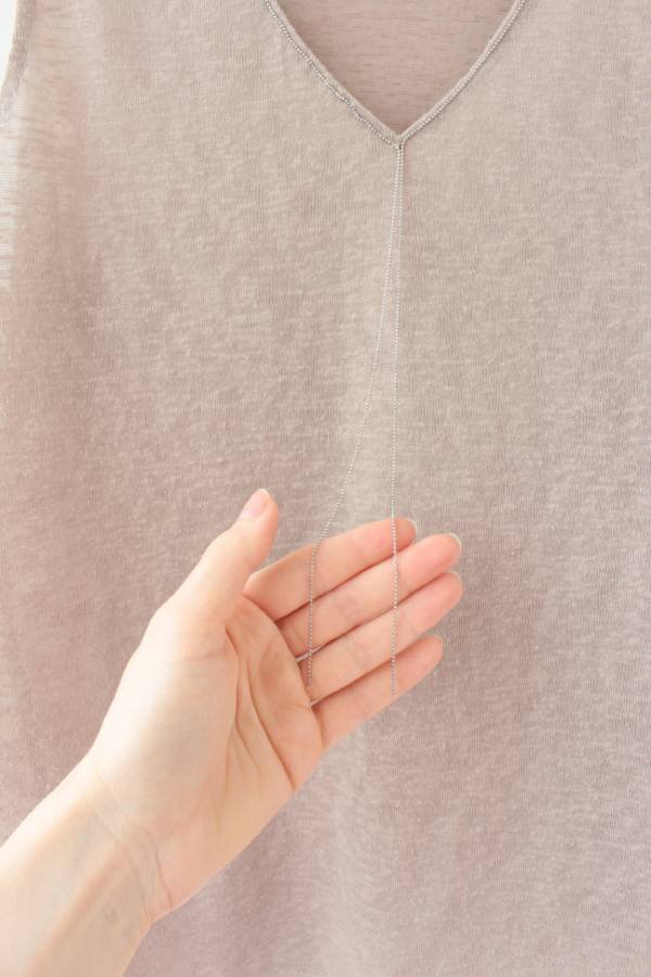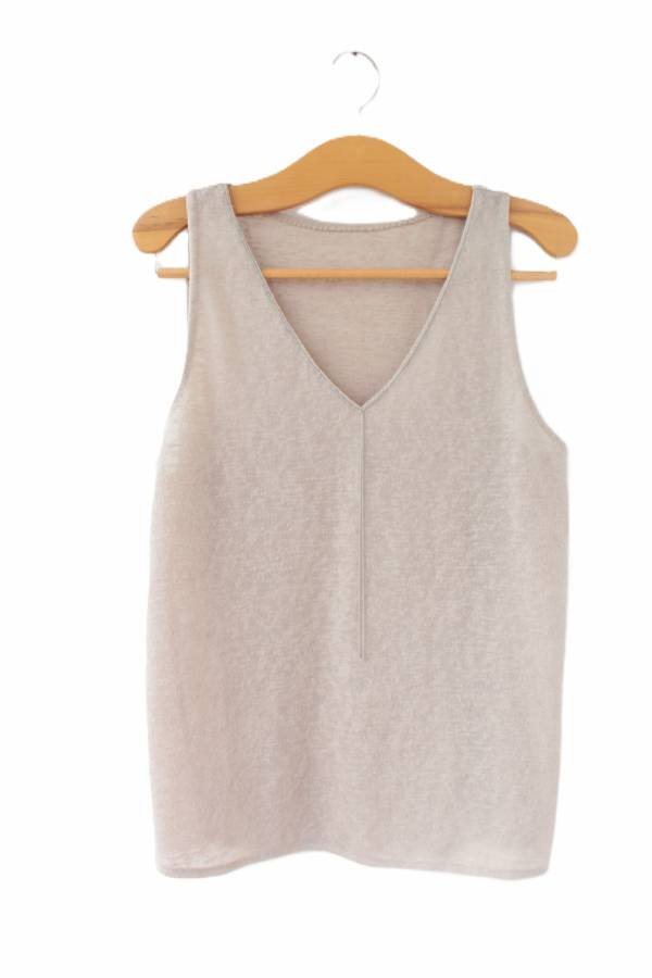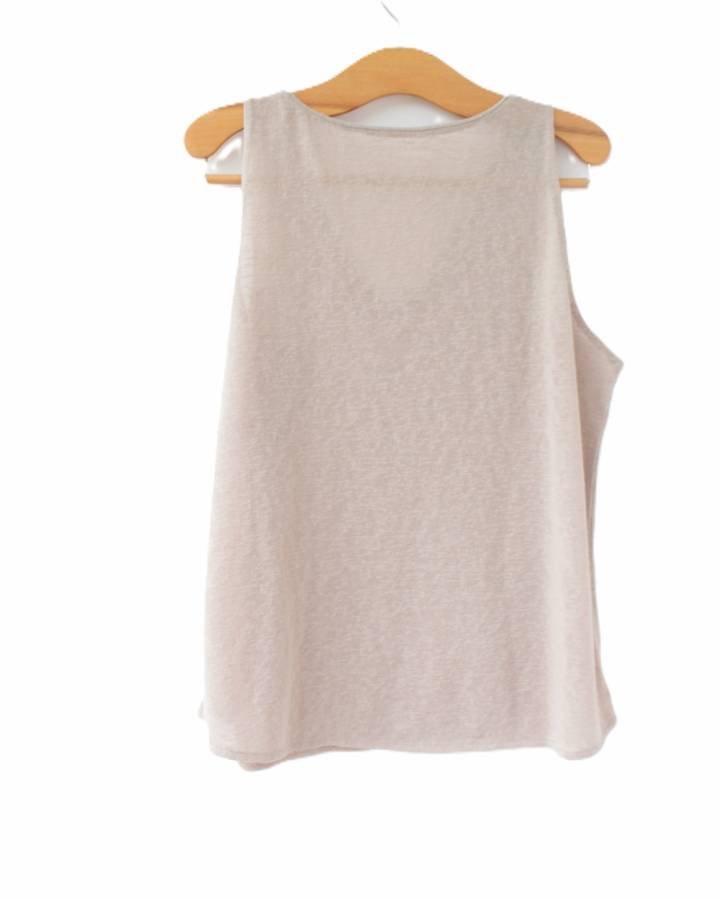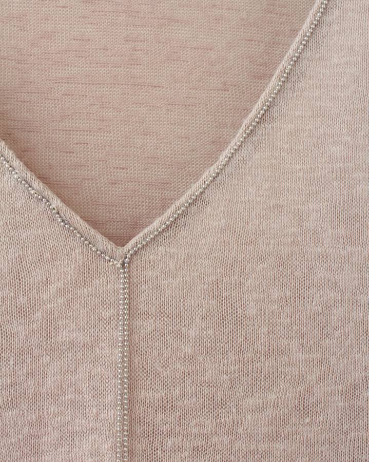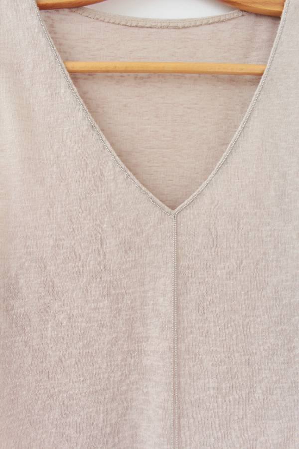 Bluzka vintage w kolorze beżowym, o subtelnym, ciekawym wykończeniu dekoltu w formie łańcuszka.