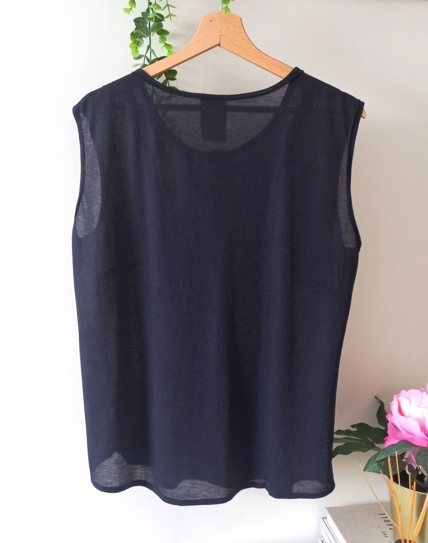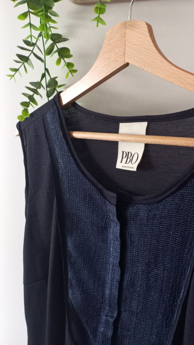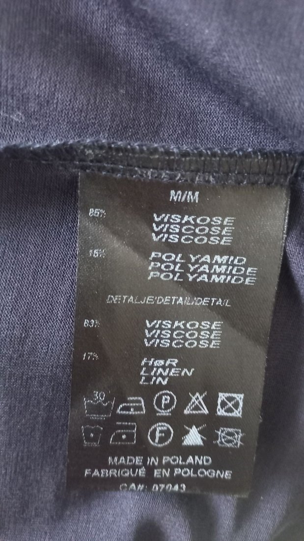W składzie przeważa wiskoza i len, piękny granatowy kolor.