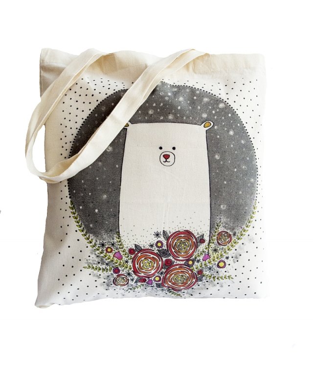 Torba bawełniana z autorskim nadrukiem, długimi uchwytami. 100% bawełna. Dugość uchwytów 37,5cm Wielkość torby 42x38cm. Pojemność 15 litrów. Torbę należy prać w niskich temperaturach lub ręcznie. Można prasować.